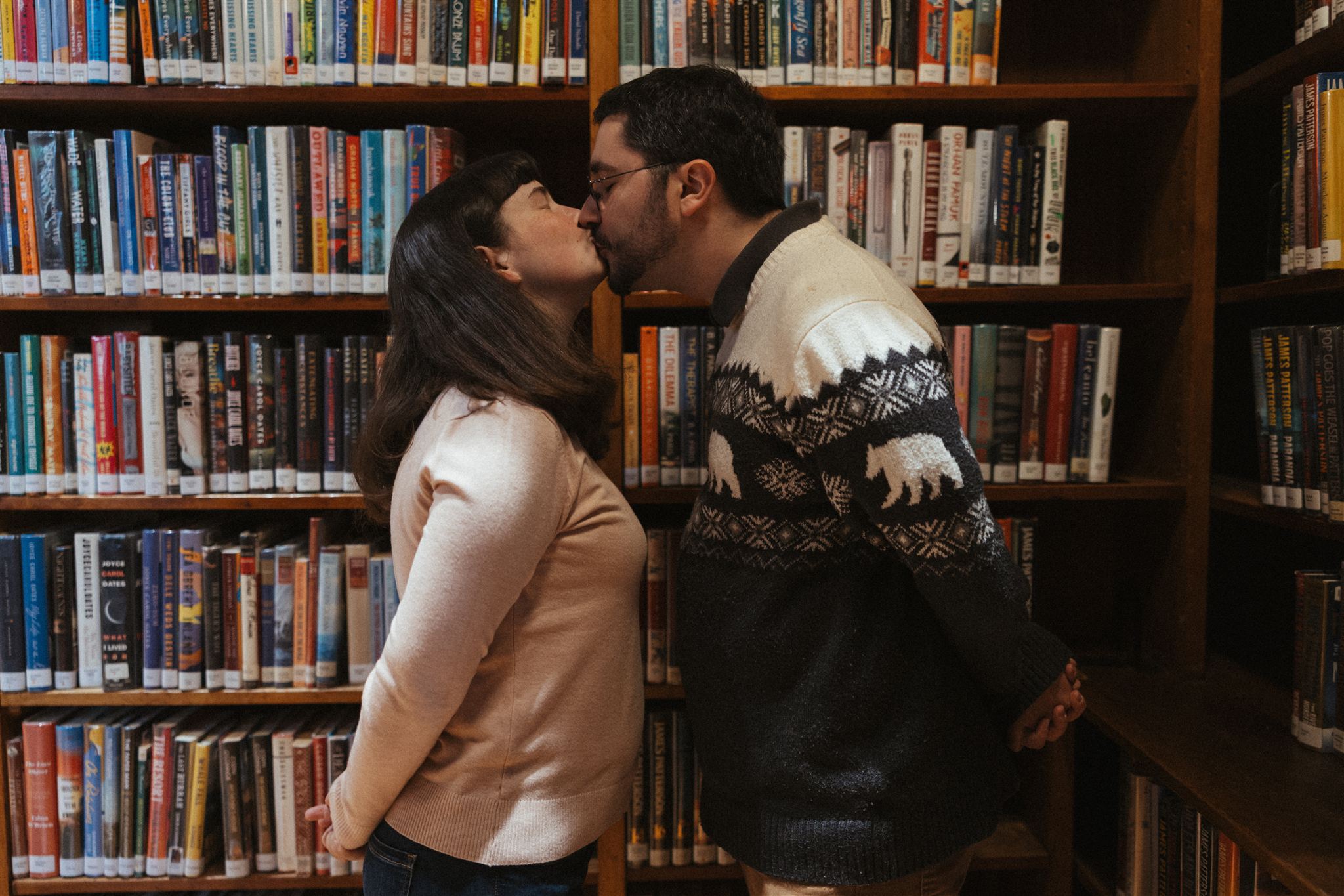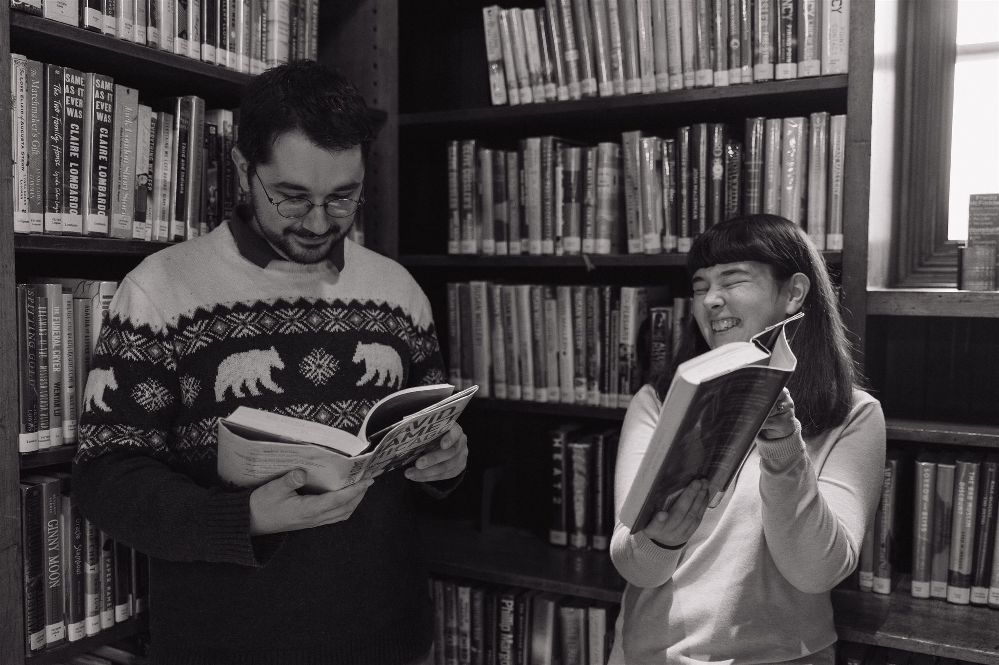 - quiet moments giggling like little kids behind bookshelves