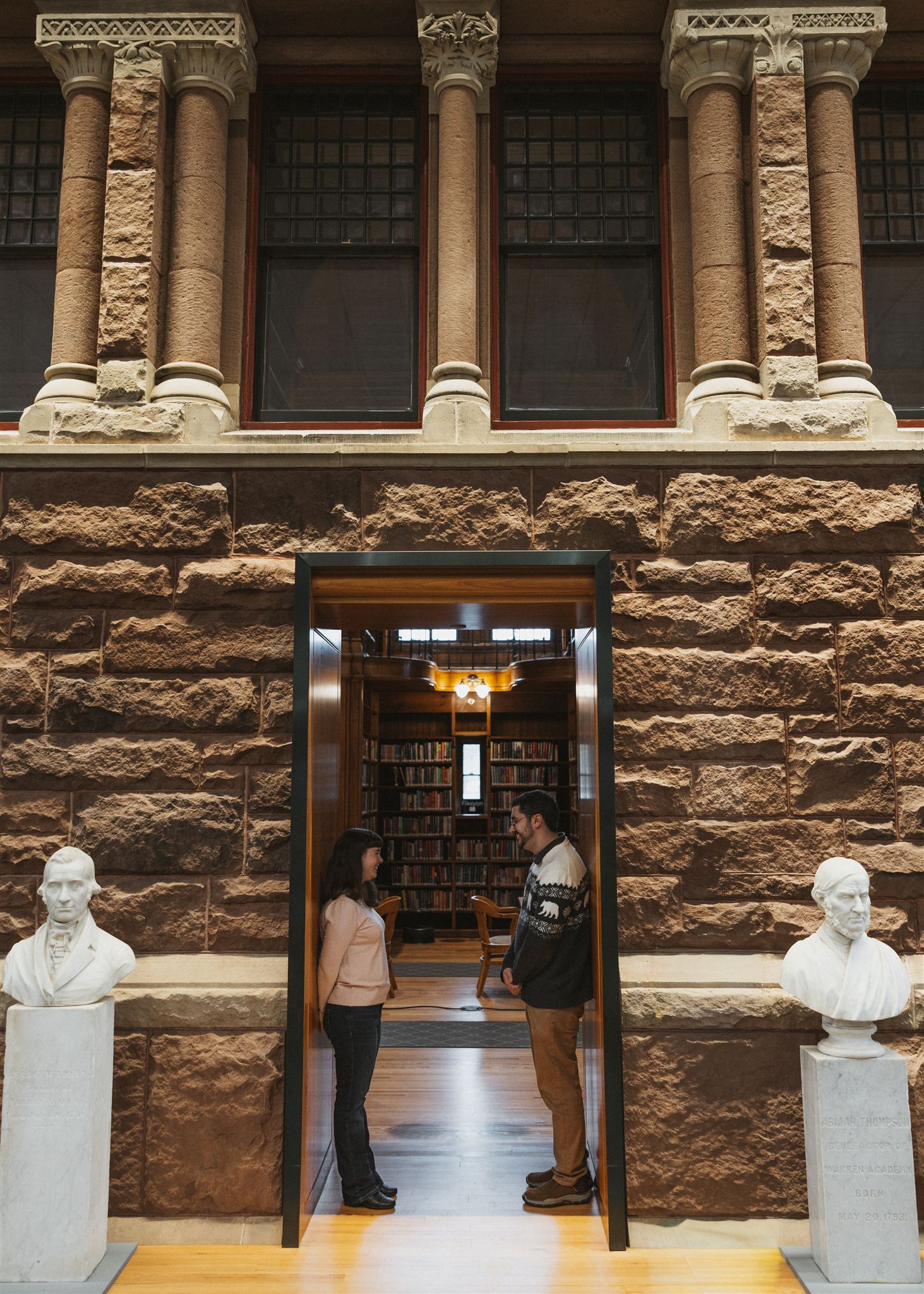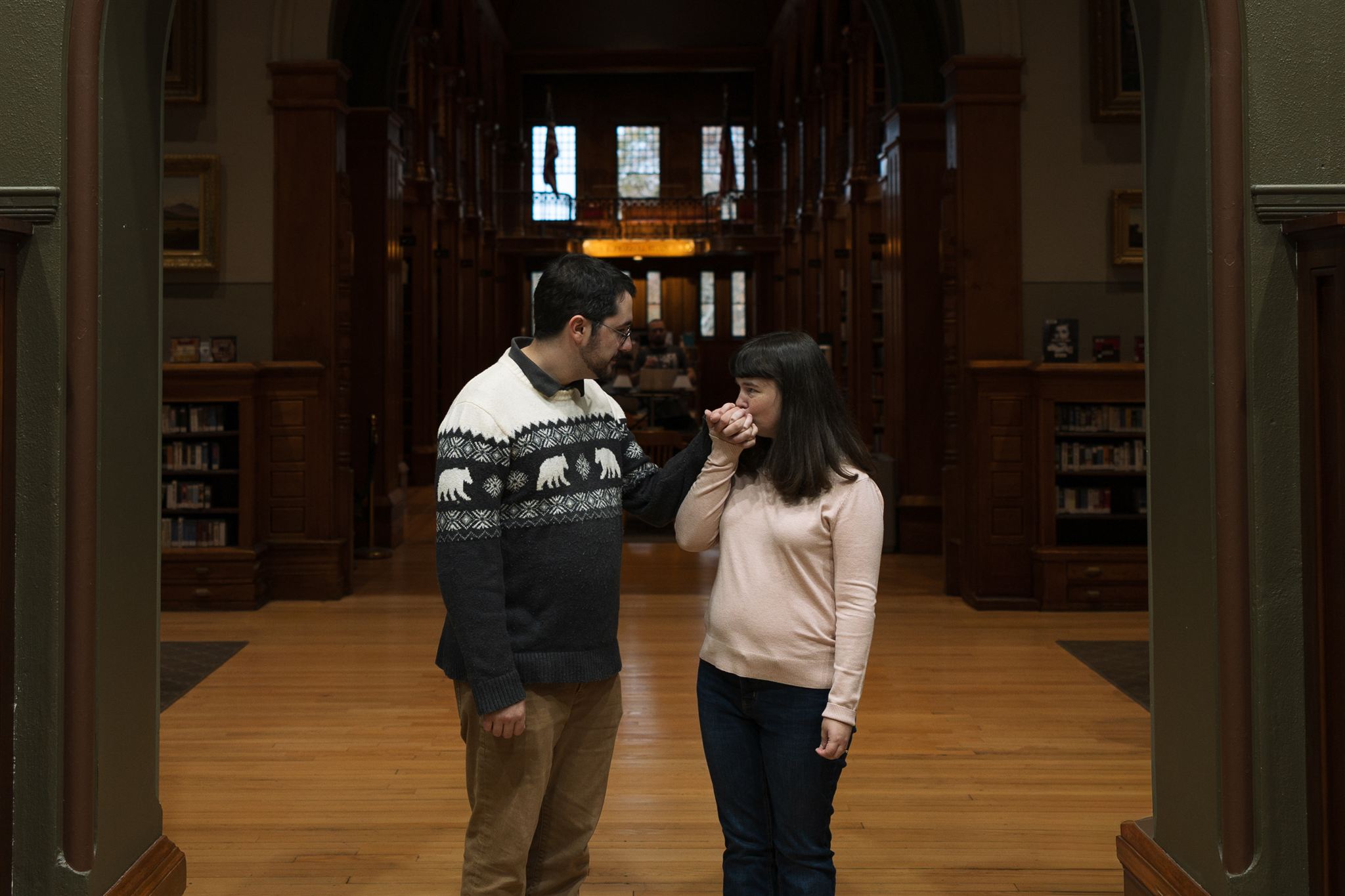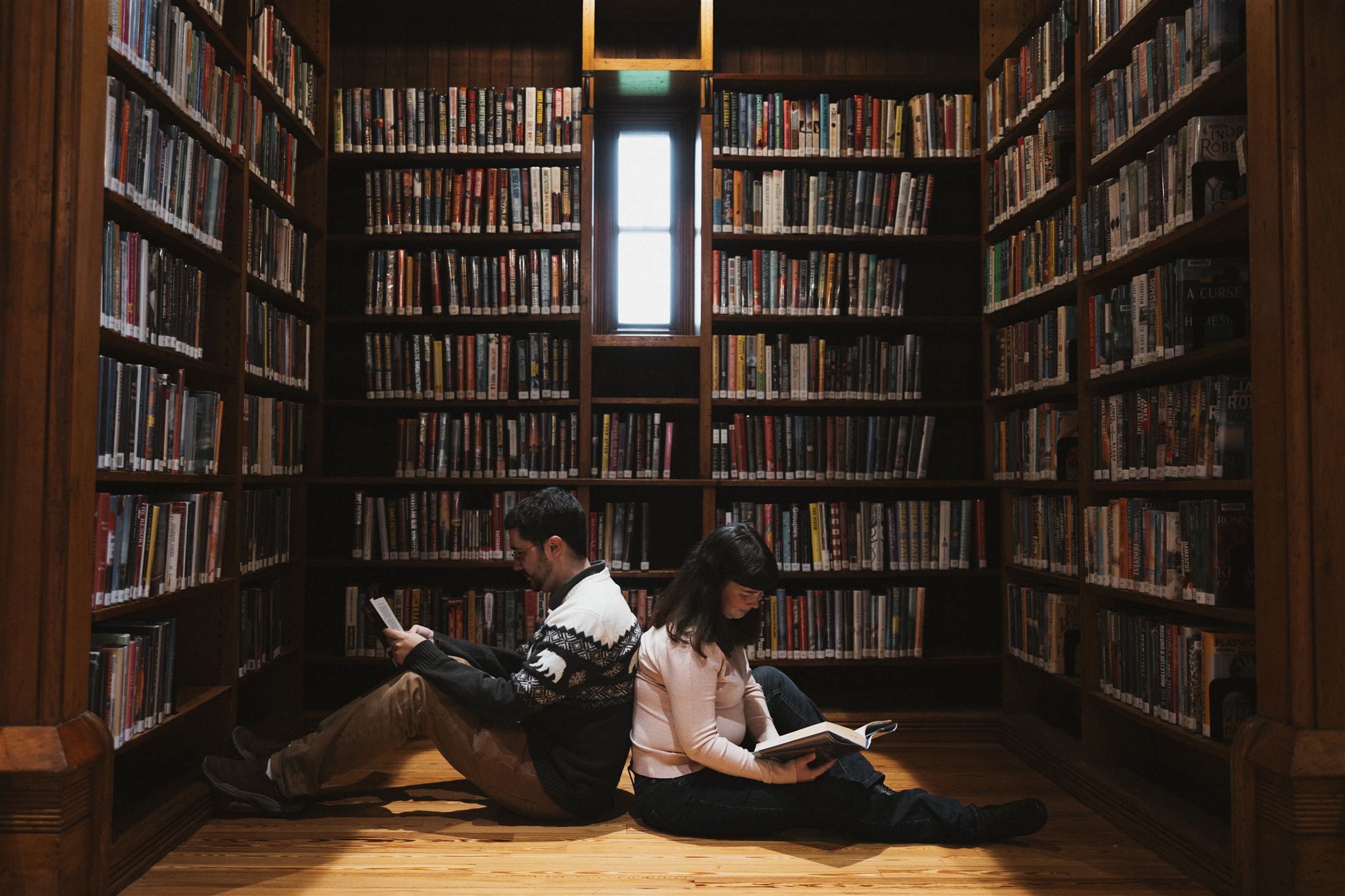 That’s exactly what we leaned into for Sarah and Matt’s library engagement photos and the library couldn’t have been a more perfect fit for them.